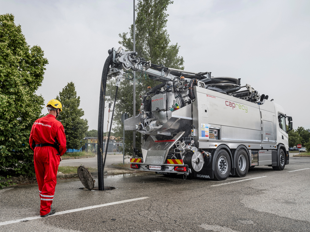 Constructed for cleaning sewers and ducts, CAPRECY works quickly, efficiently and economically, recovering the used water for re-use in a continuous cycle. The exclusive integrated Cappellotto Recycling System (CRS) separates the water from the sludge through filters and separators, enabling it to be continuously and immediately reused by the high-pressure pump. CAPRECY uses a 5-stage sludge separation and water recycling system.