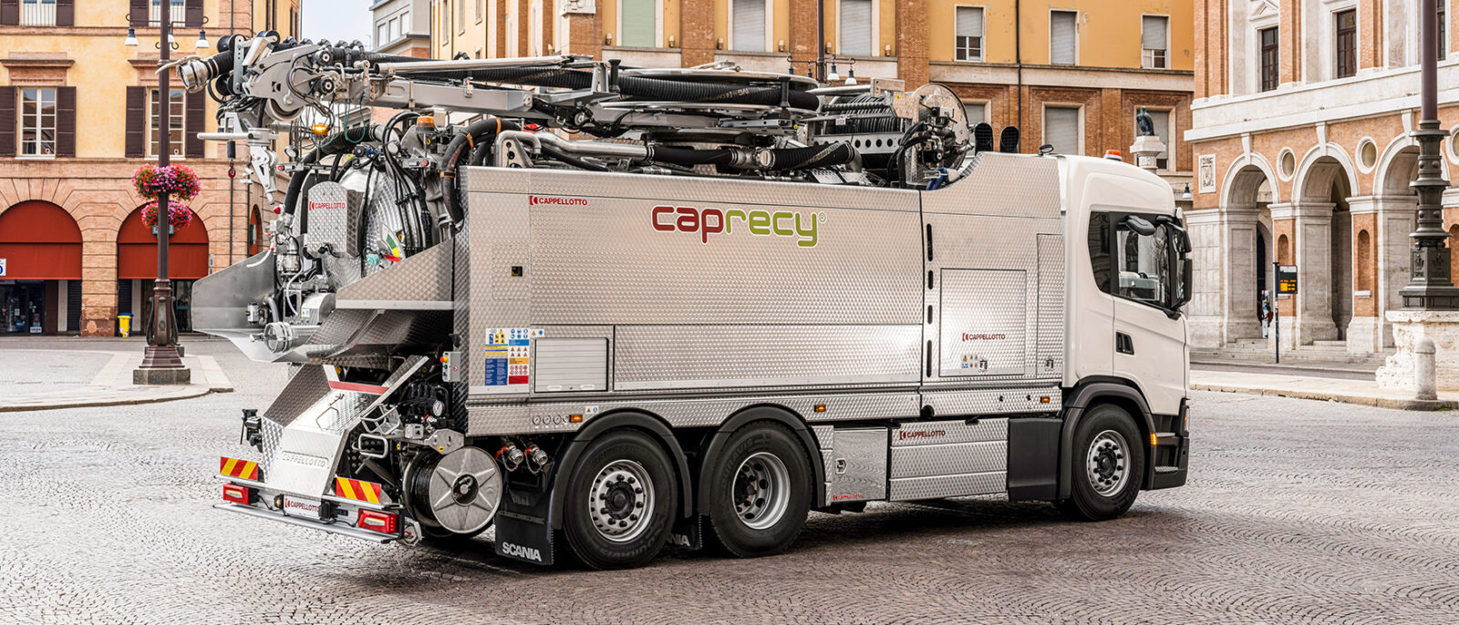 Constructed for cleaning sewers and ducts, CAPRECY works quickly, efficiently and economically, recovering the used water for re-use in a continuous cycle. The exclusive integrated Cappellotto Recycling System (CRS) separates the water from the sludge through filters and separators, enabling it to be continuously and immediately reused by the high-pressure pump. CAPRECY uses a 5-stage sludge separation and water recycling system.